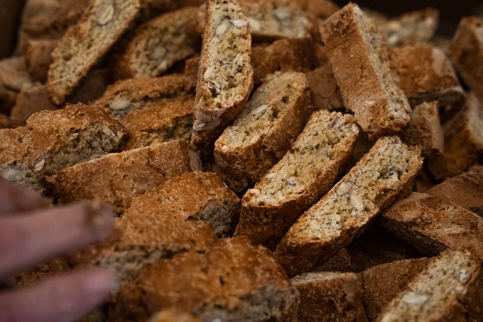 Questi biscotti croccanti e saporiti, e secondo la tradizione sono perfetti da gustare con un buon bicchiere di Vin Santo.